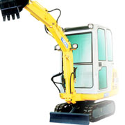 Afmetingen Doorsnee van het carroserie platform 1014mm Breedte van de rupsband 230mm Afstand graaf arm naar roterende machine 2512 mm Maximale reik wijdte 3607mm Maximale hoogte voor "bulldozing" 202mm Machine hoogte 2195mm (canopy uitv.) 2250mm (cabine uitv.) Technische prestaties en specificaties Motor kracht (Perkins/Kubota/Chinese motor) 14.7KW/14.2KW/14KW/2200rpm Gewicht YC 15 1500 KG (Canopy uitv) 1600 KG ( cabine uitv ) Inhoud van de graafbak 0,04-0,07 M3 Werkende druk van het hydraulisch systeem 16 MPA Constante stroomsnelheid van de pomp 2 x17,6+6,6 l/min Maximale graaf kracht 10.5KN Hellings percentage 58% (30° ) Druk op de grond in Kilo pascal 27 KPA (canopy ) 29 KPA ( cabine ) Loopsnelheid van de YC 15 2 km/h Maximale trek kracht 11.6KN Draaisnelheid van het platform 10~12 rpm Zwenk hoek van de graaf arm L 49° /46° / R 68°/ 48° Operationele cijfers Maximale graaf diepte 1860mm Maximale graaf hoogte 2940mm Minimale draaistraal van achtereinde platform 1180mm Maximale draaistraal voor graafwerk 3490mm Maximale diepte voor "bulldozing" 167mm Maximale los hoogte 2013mm Klik hier voor de YC15-8 | |